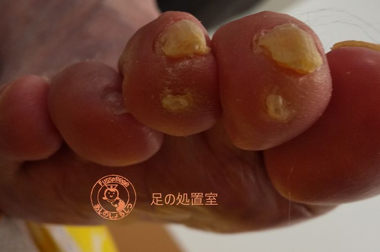 靴の中で足が前滑りして、いつも圧迫されていたのでしょう。押さえると痛みがあるとの事。
