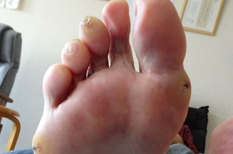 痛い胼胝、歩行に支障が出てしまいます。訪問フットケアでスッキリさせてはいかがでしょうか?